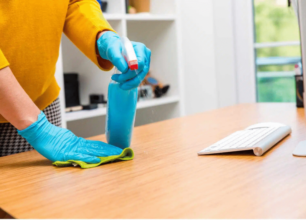 - Dust and wipe table-top surfaces